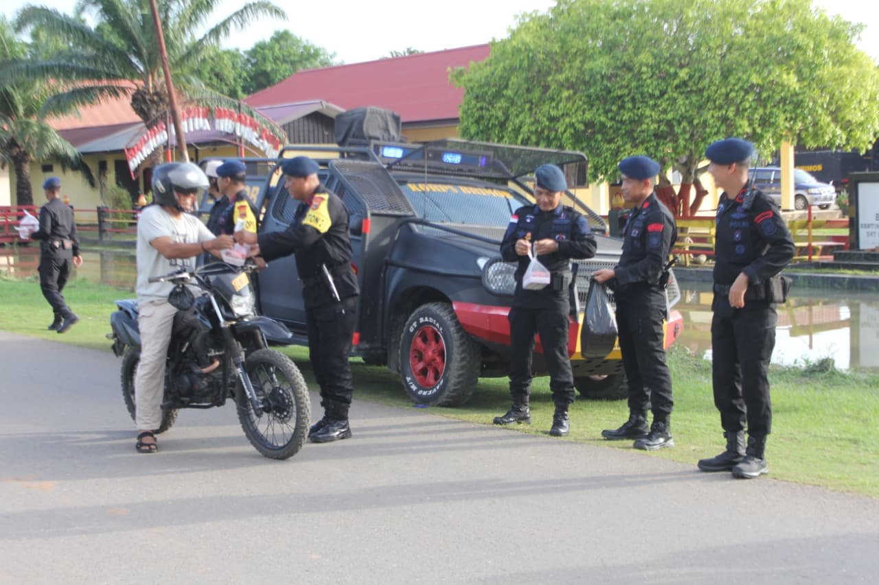 Ratusan paket takjil disiapkan dan dibagikan secara langsung kepada pengendara roda dua, roda empat, maupun pejalan kaki yang melintas di sekitar lokasi kegiatan. Kehadiran personel Brimob dan Bhayangkari dalam kegiatan tersebut disambut antusias oleh masyarakat yang tengah menjalankan ibadah puasa.
